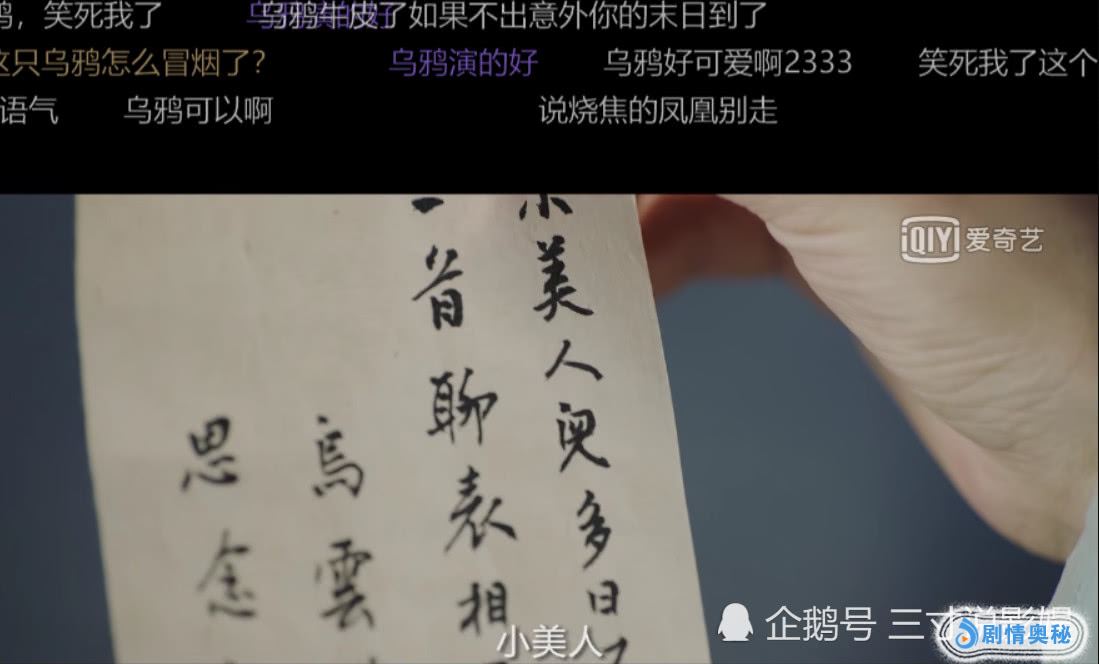 在之前播出的一段招摇和姜武互传情书的剧情中,很多的观众都被逗笑了。姜武拿笔的姿势确定不是来搞笑的吗?好好的一文盲学人家写情书,关键在于他和招摇简直就是不在一个频道上面。而给两人送信的黑乌鸦却是最大的亮点,这只由姜武所饲养的黑乌鸦就连说话的口气都跟姜武一模一样。浑身都冒着黑气,感觉就像是烧焦了一样!