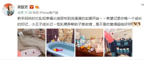 有了儿子之后,张歆艺也变得越来越温柔,微博中也开始使用“洗澡澡”这些叠词,而从张歆艺晒出的坐月子期间的素颜照来看,对着镜头俏皮比V的她,整个人也是散发着母爱的光芒。