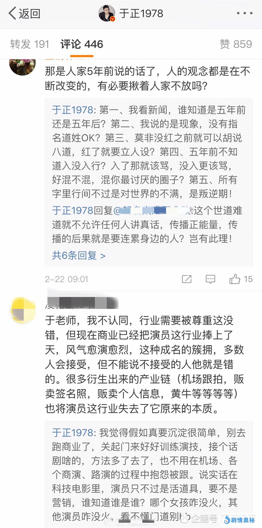 近日于正发了一条微博,吐槽现在的年轻演员“不适合红”“一边享受着这一行带来的名利,一边看不起这一行”“好好拍戏之前先学着好好做人吧!”。配图是一张冰天雪地中略带科幻色彩的图,虽然没有指名道姓,但是很明显是在指屈楚萧了。所有人都看得出他说的是谁,有屈楚萧的粉丝在评论反驳他,反而被回怼“科技电影里,演员不过是个活道具。要不是营销,谁知道谁是谁”。你觉得于正说的有道理吗?