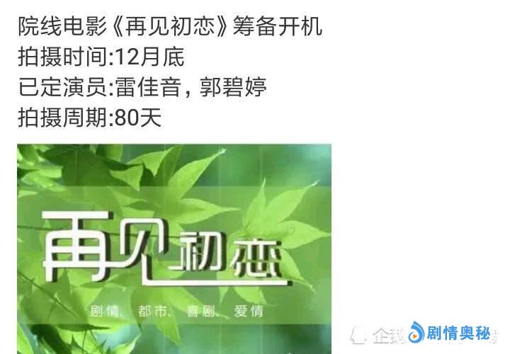 而据悉,目前有一部新的院线电影叫做《再见初恋》正在筹备当中,暂定在2019年12月份开机拍摄。这部影片是都市爱情喜剧题材,男主邀请雷佳音出演。去年雷佳音和佟丽娅主演的电影《超时空同居》,也获得了很不错的票房成绩。