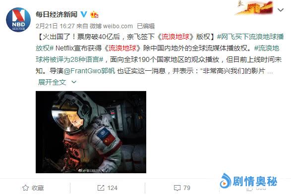 现在有喜讯传来,鉴于《流浪地球》的火爆,除了在amc旗下的影院上映(被万达收购),美国的流媒体视频巨头Netflix(网飞公司),已经签下了《流浪地球》的播放权,不仅在美国地区播放,还会面向全球190个国家和地区播放,为了照顾观众的观影感受,还会将其翻译成28种语言。啊啊啊,中国电影这次是真的走向了世界!