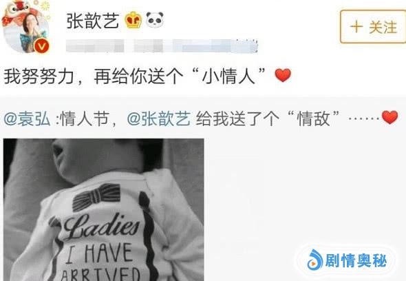 不过张歆艺却在袁弘微博下面回复道:下次给你一个情人。由此可见这对夫妇都是很幽默的人,紧接着韩雪在下面的评论就又火了。韩雪在微博中评论道:“恭喜恭喜,情敌还是情人都好,祝有情人终成一家。”韩雪不愧是娱乐圈中,高情商明星的代表,她的这句话把袁弘和张歆艺的话全部包揽了进去,同时还送上了自己的祝福语,的确是一举三得。