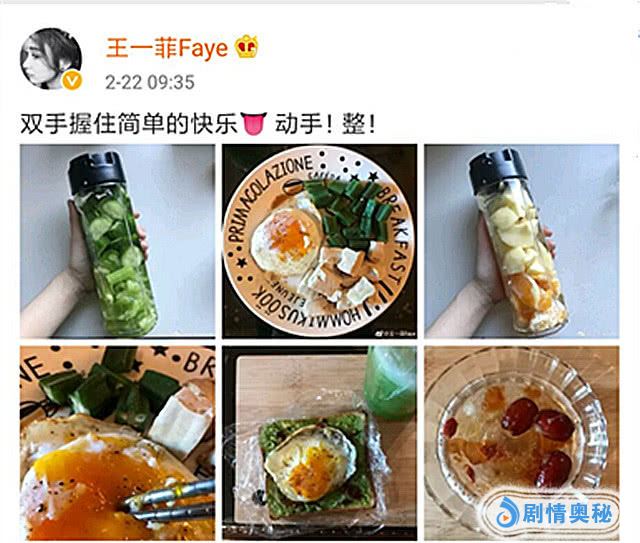 这次王一菲多晒了几份减肥餐,不过大多都是一个鸡蛋、几块豆腐,还有一小点蔬菜,包括面包上面涂抹的应该也是蔬菜酱,还有喝的也是蔬菜汁,红枣枸杞糖水也利于减肥,看到王一菲的主食,小瓦顿时觉得这分量可能还不及瓦平常吃的零食千分之一,实在罪恶~