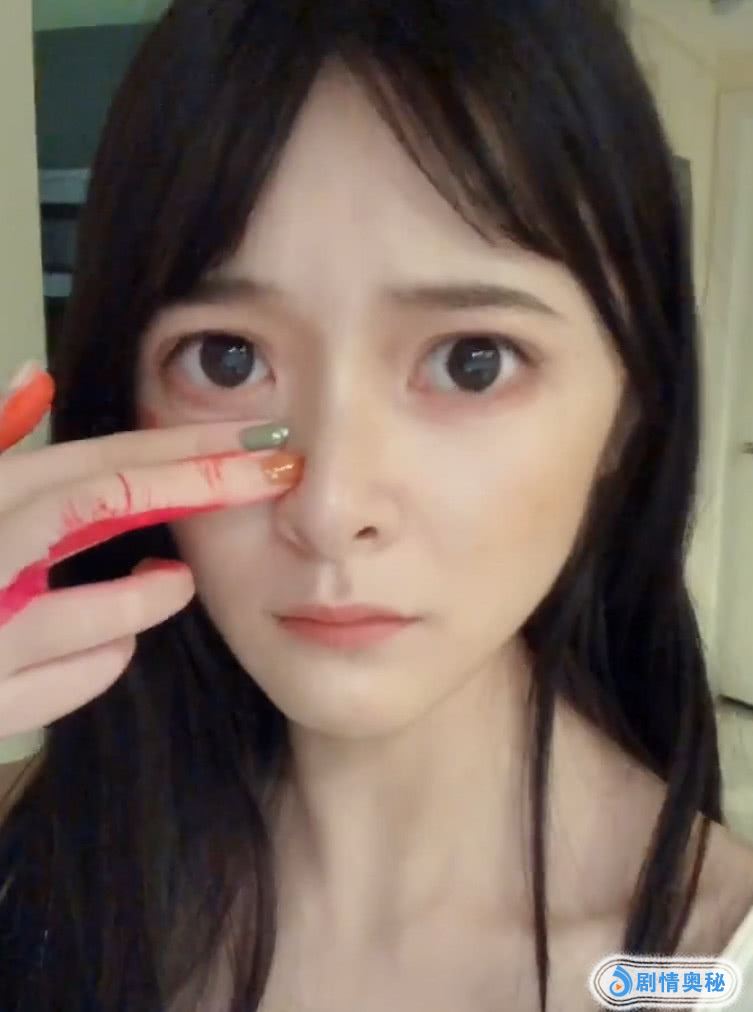 而在画好一边之后,徐娇也开始对着镜头端详自己,想要做出如Alita一般冰冷的表情,不过,看到自己的妆容后,徐娇也是有些忍不住想要笑出来,而尽力忍住不笑的她都快要哭出来了。所以即使徐娇抓住了人物形象上的特点,但是难以模仿出Alita富有杀伤力的眼神的徐娇,整段也是就此垮掉。