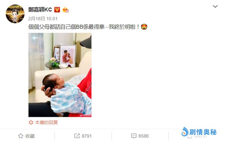 公开资料可以看到,陈凯琳是在情人节在医院生下了小宝宝。而在同天,娱乐圈的另一对夫妻也生下了自己小宝宝,也就是袁弘和张歆艺。在当天的时候, 袁弘就在微博上说张歆艺给他送来了一个“情敌”,当然了,甜蜜有爱的妻子张歆艺也是调侃回复会给袁弘一个“小情人”。