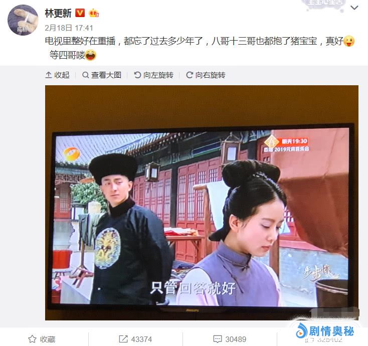 甜蜜的互动引发了粉丝的调侃,毕竟袁弘和郑嘉颖曾经在《步步惊心》演过戏,一个十三爷,一个八爷。那么同在剧中演十四爷的林更新则是少不了调侃逗玩。四爷吴奇隆和刘诗诗也有了自己的宝宝,只是还没有出生,但是在那么多主演里面,结婚生子那么多,偏偏还剩下林更新,所以粉丝也是着急不已啊。