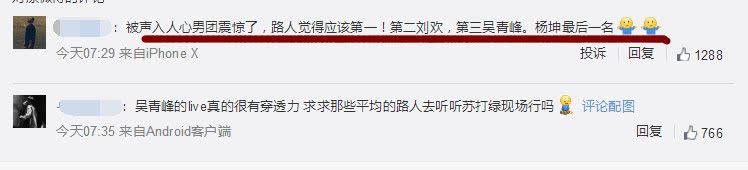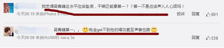 对于吴青峰获得第一名,很多网友称“吴青峰的这水平应该垫底居然还能获得第一,第一不应该是《声入人心》吗?”还有网友质疑吴青峰的唱功称:“听完他的《逃亡》后,完全get不到他的唱功甚至觉得他的声音有些娘都不知道评委团怎么评的”。反观《声入人心》男团的《心脏》被网友们大赞!