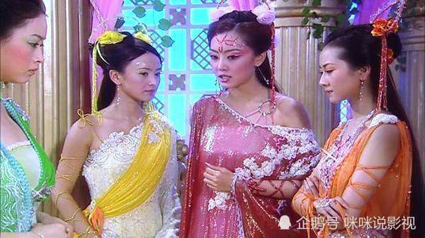 还有一幕就是刚开场的时候大家都准备蟠桃盛会,可是紫儿却下凡了,姐妹们忙着找人代替。于是就找了扫把星,后来七仙女一起出现在宴会上跳舞,这个场景也是非常美丽的。