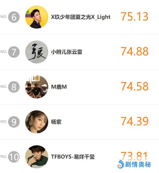 我们接着往下看,排在TOP10后五名的娱乐圈明星依次是夏之光、张云雷、鹿晗、杨紫、TFBOYS,其中人气偶像鹿晗回归榜单,频频更新动态的杨紫易烊千玺紧随其后,值得一提的是杨紫与张家辉合作的新片《沉默的证人》定档4月4日,小紫银幕秀值得我们期待。