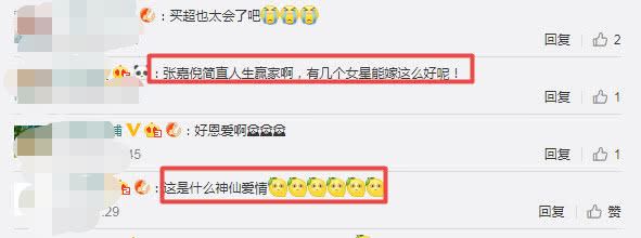 对此,网友也纷纷留言评论:“今天也是为神仙爱情流泪的一天,我酸了,这也太甜了,看得我想谈恋爱”、“张嘉倪简直人生赢家啊,有几个女星能嫁这么好呢!这是什么神仙爱情。”你羡慕这样的张嘉倪?