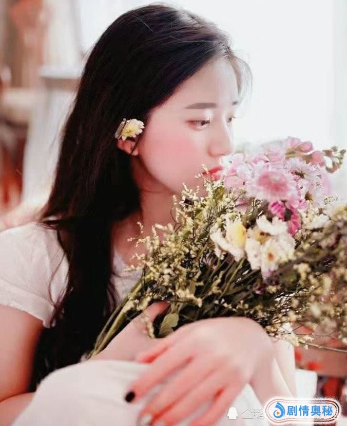 大概仙女也不过如此了,戴着一朵鲜花,眼神温柔淡然,发现有人后脸颊瞬间微红,像是一个不出远门的大家闺秀,又像是花仙子,看来仙女下凡也是真的辛苦了。