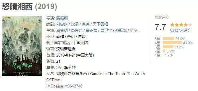 《鬼吹灯》的小说虽然我没完整看完过,但是改编的影视作品,我基本没落下,额,《云南虫谷》除外。《怒晴湘西》刚开播时,我是直接看完前六集。
