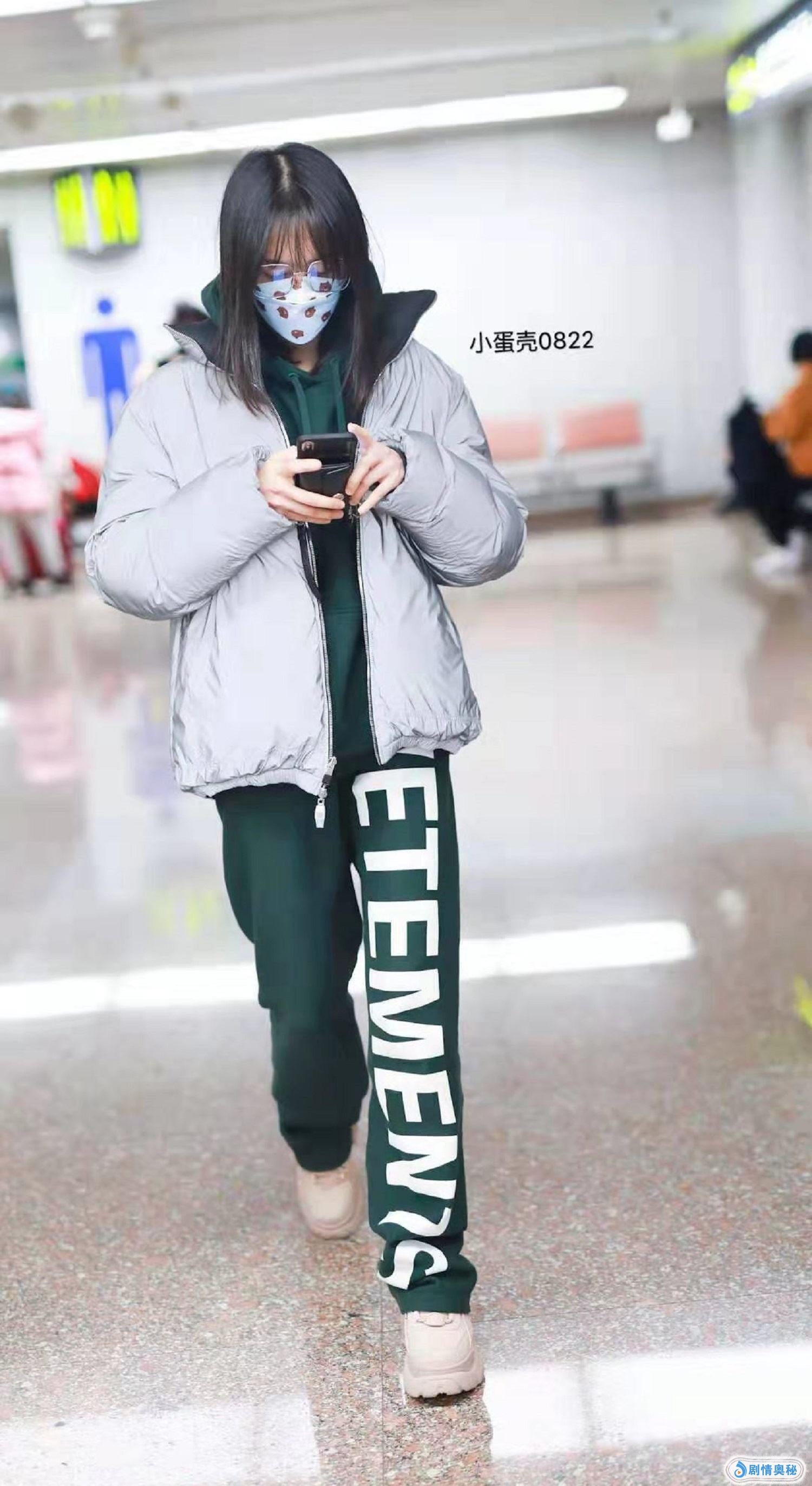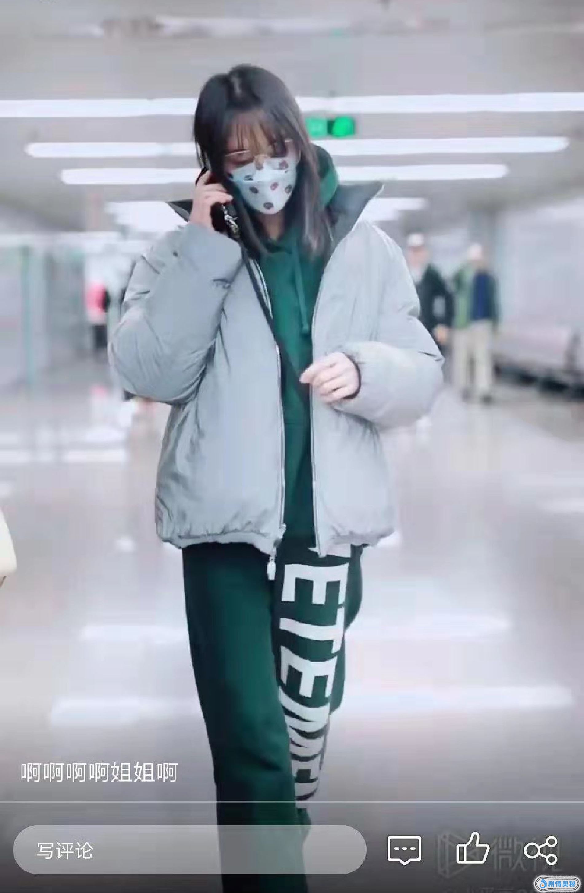 光是看郑爽的穿搭,外穿一件白灰色的羽绒服,内搭一件绿色的运动服,下着一条同色的运动裤,再配上一双淡色的鞋子,就让人觉得很有少女感啊。虽然说她带着口罩出现的,但是也是难掩她整体的青春气息,可以说是超耐看。