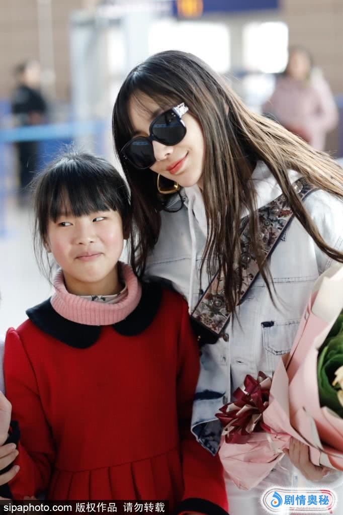 2019年2月24日消息,上海,Angelababy潮装现身机场,与小粉丝开心合影很亲民。