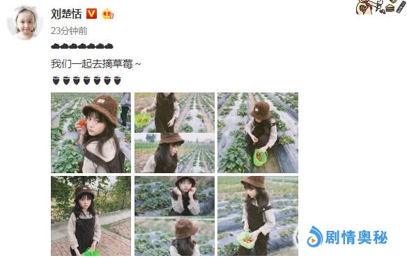 今日(2月24日)刘楚恬的妈妈也在微博晒出了一组女儿的最新照,并附文表示:“我们一起去摘草莓。”