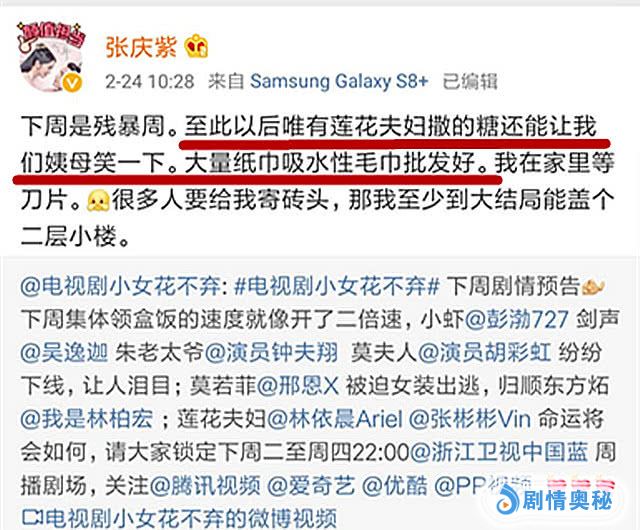 而且也有网友透露原著结局并没有这么虐,相信正片也一定会给大家一个满意的结局,以往的剧也会有先扬后抑,先甜后虐的拍摄风格,但《小女花不弃》这部剧是轻快得太多,赚足了我们的笑声,又在最后憋了一个大招,要狂虐我们啊,小瓦在这里也请各位看官提前准备擦泪纸巾哦~