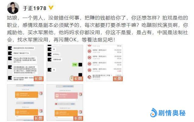 说到圈里最爱和艺人撕的人物,于正敢说第二都人能说第一了吧?虽然有时候撕的不带名,但是之前大家也都知道他说谁。每次看他撕也是很精彩了,最近在这平淡的生活中,于妈的一场撕逼,又给大家带来了不少的乐趣。就像刚刚爆料自己的艺人被前女友骚扰,被威胁什么的。