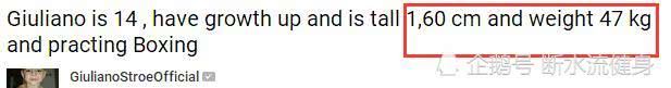 从最近他父亲在社交媒体上公布的消息我们可以了解到,这个小孩长高了许多,14岁的他,身高1米60体重47公斤,看上去好像很正常,但是网友却质疑他练废了。
