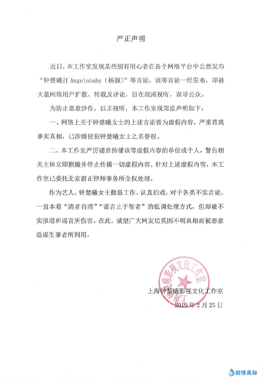 只是让人意外的时,她突然在微博里面,发了一条申明,而这个申明竟然是否认自己打了Angelebaby(杨颖),看到这,很多网友都蒙了,这到底是怎么回事呢?难道是我信息落后,以至于有人说钟楚曦打baby,我竟然不知道?等等,大家对这突入起来的消息,给看懵了。