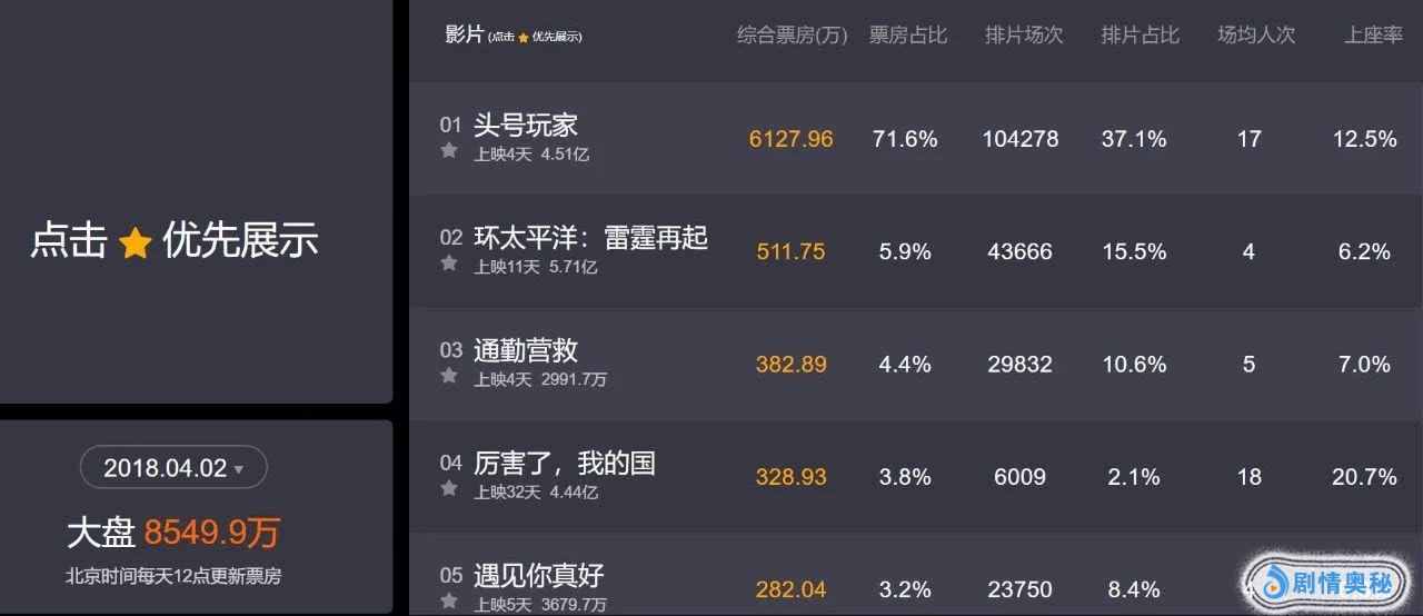 至于这部电影的票房成绩,其实4天近5亿已经相当不错了,毕竟这会可不是春节档,去年有斯皮尔伯格执导的《头号玩家》,上映4天时累计票房也就4.51亿,但最终票房有13.96亿,以此来看,《阿丽塔:战斗天使》要突破十亿票房还是有机会的,当然,《头号玩家》口碑更好,所以耐力更足。