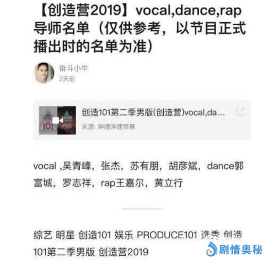 创造101作为网综节目,真的是红翻天啊。上一季出道的组合,现在虽然代表作不多,甚至很多人也没听过,但是确实是很火。而如今第二季也已经开始录制了,让不少人都期待这次的阵容。对于选手还没什么好期待的,毕竟都是新人,但是对于导师大家很在意啊。