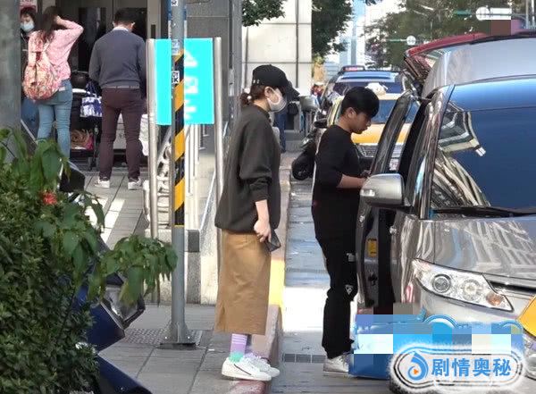 当天被台湾媒体记者拍到的刘诗诗穿着黑色上衣,驼色长裙配黑色鸭舌帽和粉色口罩。