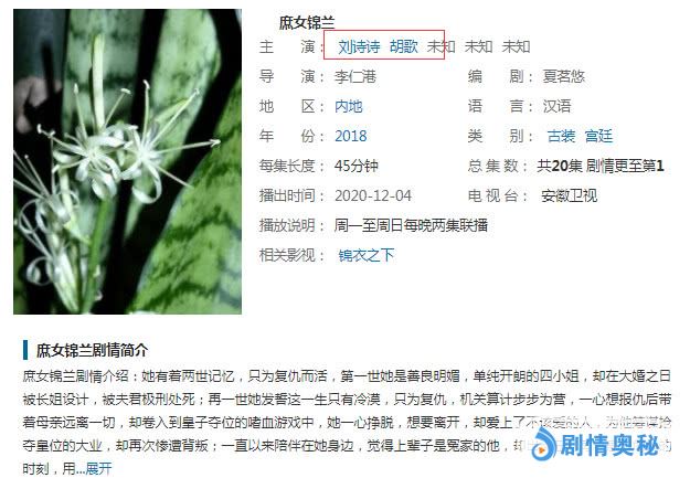 而目前这部电视剧已经播出结束了,没想到这部电视剧刚结束,网上就传出了另外一部电视剧《庶女锦兰》将要开拍播出的消息了,《庶女锦兰》这部电视剧中的女主锦兰跟《知否》中的明兰一样也是庶女出身,但是锦兰的人生似乎要比明兰的命运更加悲情一些。