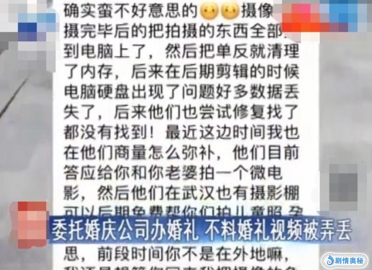 小孟表示,自己的婚礼行程都是婚庆包办的,光是宴场就花了九万。在一八年年底的时候,举行婚礼。婚庆也按约定提供了会场司仪以及摄像。本以为婚礼已经圆满举行了,但却在婚礼举行不久后,被婚庆公司弄丢了婚礼现场的视频。