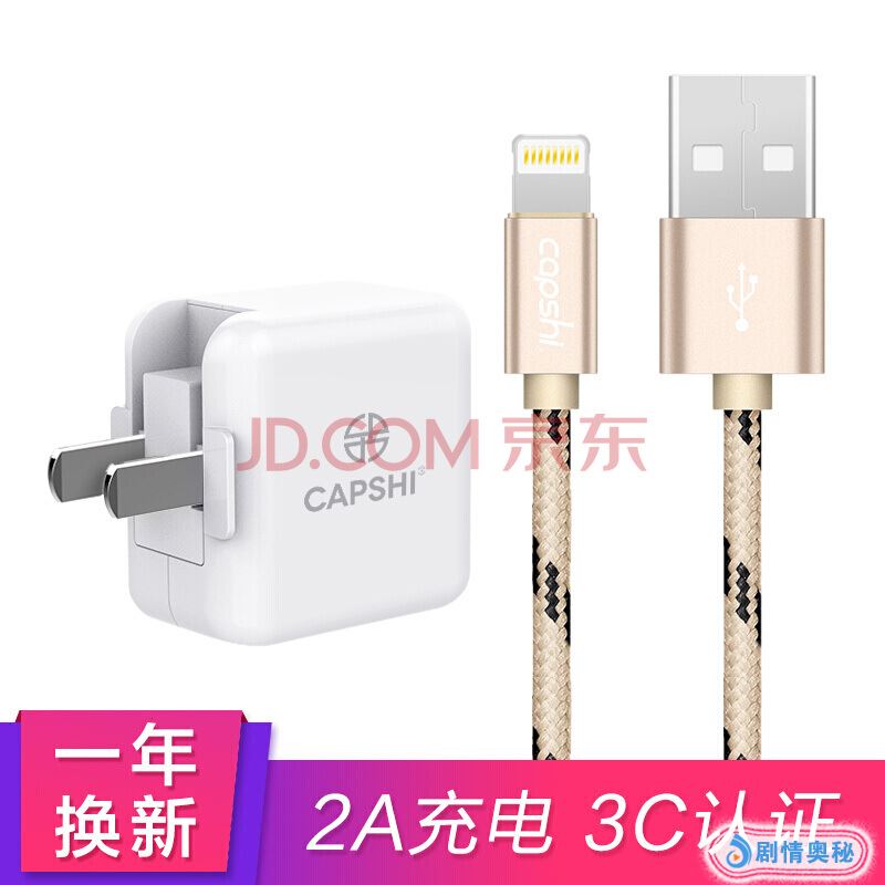 凯普世 苹果充电器套装 2A手机充电器头+苹果数据线1.2米金色 适用iPhoneXS/max/XR/8/7Plus/6/5