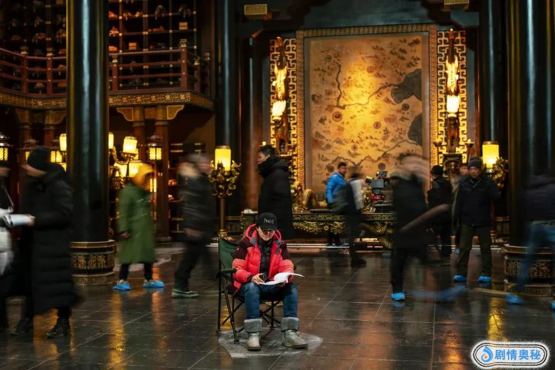 探班第一日上午,拍的是讲经首座的戏。“我要去,那便去”,这是杨阳导演提示的潜台词,于是讲经首座眼神坚定,大步往前,这些心理活动是表演的支撑点。