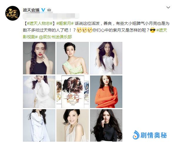 女主角姬紫月,是叶凡的妻子。心性飞扬,无拘无束,接近完美。她应该是拥有绝世美貌和倾世才情的大美人。所以选择演员,外貌上一定要漂亮,气质上一定要出众。还要有丰富的表演基础。官微放出了8位待选演员,分别是:杨颖、徐熙媛、迪丽热巴、赵丽颖、郑爽、林依晨、杨子姗、郭碧婷。其中陈瑶和迪丽热巴呼声最高。恕我眼拙,第六位演员难道不是林依晨吗?难道她是陈瑶?可看着也不像啊?