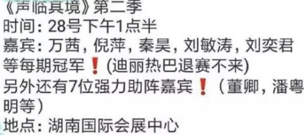 这些年来,迪丽热巴人气很火,但是,外界质疑也是不断,从金鹰奖夺冠到参加《声临其境》每一次都遭到了外界不小的质疑,而最近,有网友爆料第二季《声临其境》总决赛录制名单:万茜,倪萍,秦昊,刘敏涛和刘奕君等周期冠军均赫然在列,迪丽热巴缺席,还是让人感到遗憾的,据该知情人透露,迪丽热巴退赛了,不知道是因为压力过大,还是其他原因,此时选择急流勇退,对于迪丽热巴来讲也不失为一个很好的选择。