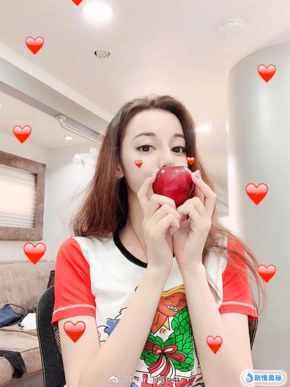 27日晚,迪丽热巴晒出四张自拍,写道:看到你们都在唱歌了……清醒一点,我来了。照片中,热巴用了很少女的滤镜和贴纸,时而咬苹果,时而用勺子捂住双眼,少女心炸裂!