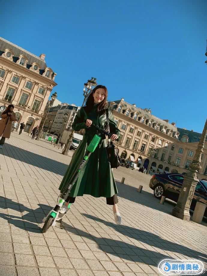 2月27日下午,江疏影微博晒出一组巴黎街头的街拍图,江疏影身穿墨绿色皮质大衣,笑容明媚,超级阳光,气质尽显。
