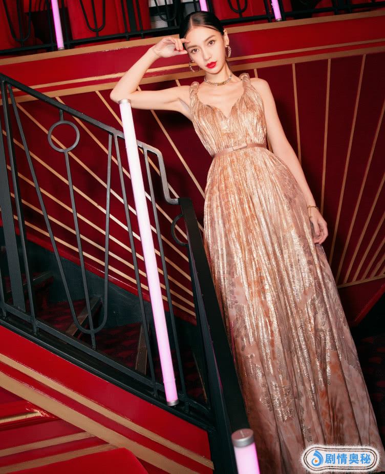 杨颖这次的裙子是金色的,这个颜色非常高级,也很适合她,腰间是丝绸质感腰带,增加了几分淑女的感觉,戴着金黑色的耳环,显得她的脸超级小,难道要这样穿衣服,才时尚?