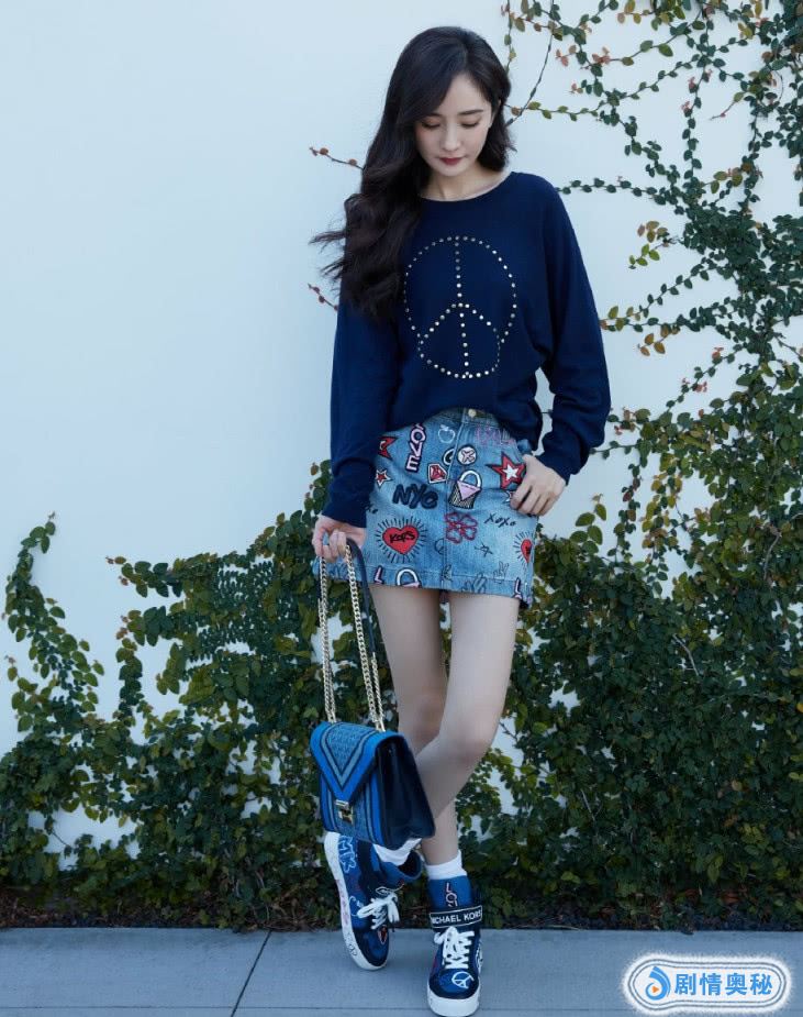 杨幂喜欢穿裙子,毕竟她的双腿看上去是那么纤细的,她的裙子是短款的设计,秀出了一双很纤细的美腿,看上去她的腿绝了,搭配一双蓝色板鞋,增加了几分休闲的感觉,她的身材真好啊。