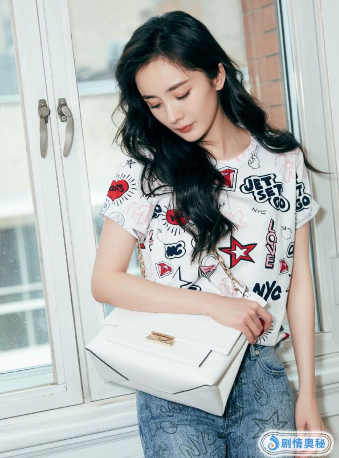杨幂还有这样的打扮,穿了一件红色的上衣,有非常多的印花装饰,看着她的衣服很好看,搭配了一条蓝色牛仔短裤,秀出了超级纤细的美腿,搭配白色运动鞋,看上去更加休闲一点,非常好看。