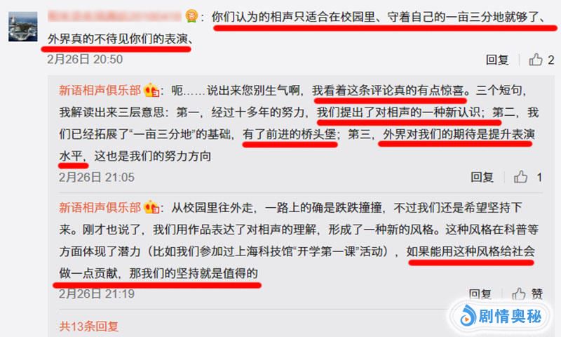 这三条神回复,再加上新语相声俱乐部所表现的惊喜态度,估计已经让写这条留言的批判之人无言以对、哭笑不得。想来他所表达的与新语解读出来的意思,应该是大相径庭,或者说侧重点不在一个层面上。