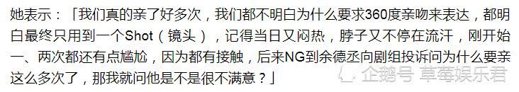 对于演员拍摄过程中的难处,大众的印象似乎就是冬天穿着单薄的衣裳拍雨戏,夏天高温穿越沙漠寻妻。但是还有一点应该是更加尴尬的,那就是拍感情戏。两个互相不认识的人,要为了诠释角色之间的感情起伏,拥抱接吻。