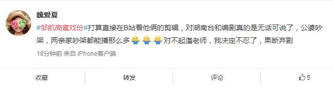 虽然邹凯和高蜜的剧情真的很对观众胃口,不管是渣还是甜,又或是玻璃渣中找糖吃,观众们都看的津津有味。不过也有很多网友表示看不下去,看到邹凯的行为就觉得很渣,自己的德行不好还乱吃醋,完全磕不动这样的剧情。