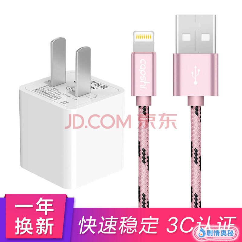 凯普世 苹果充电器套装 1A手机充电头+苹果数据线 1.2米玫金 适用PhoneXS/max/XR/8/7Plus/6s/6/5