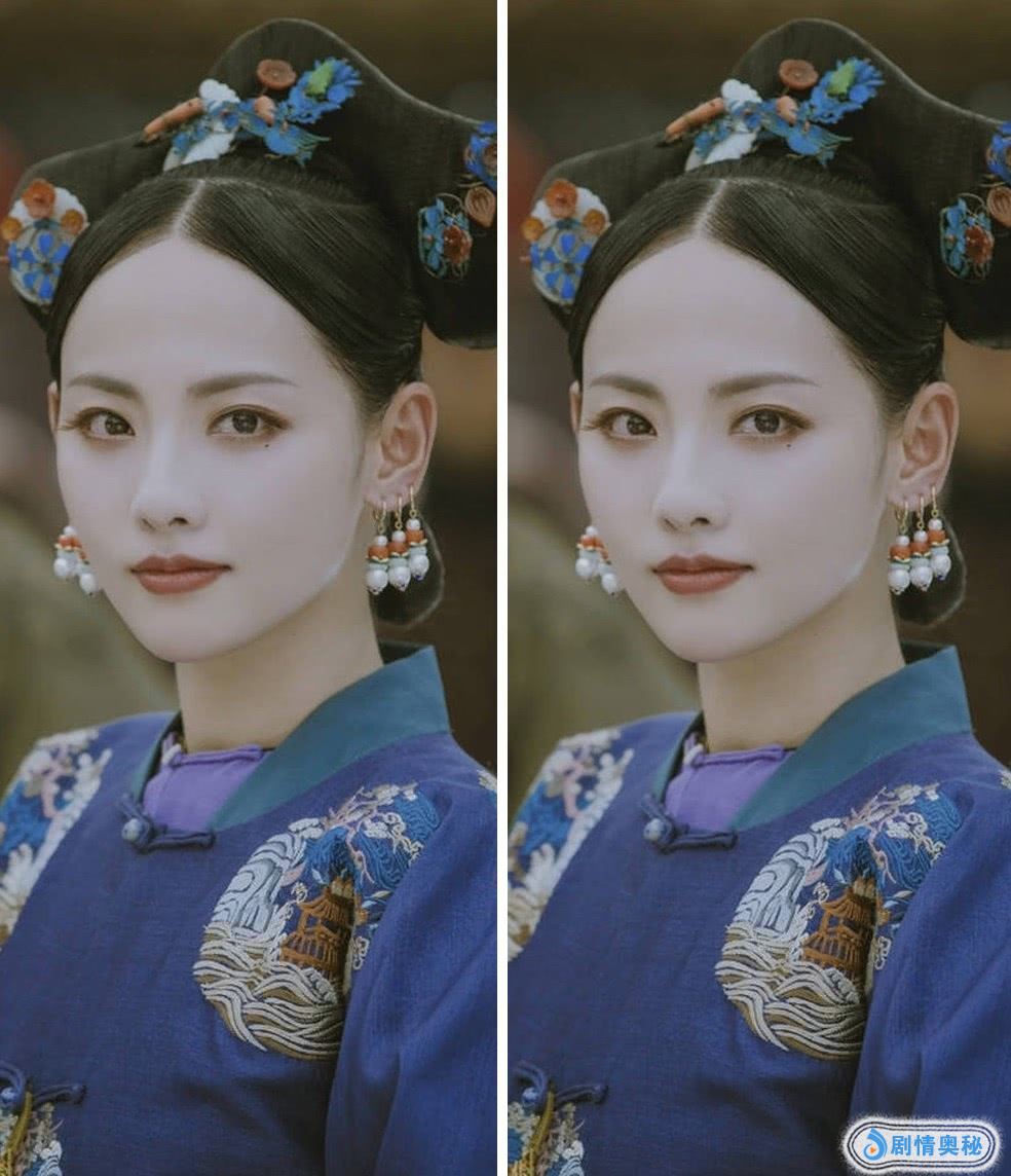 在剧中的她是在后半段的时候出现的人物,本来她有着自己的家庭的,可是却要被送到皇宫作为宠妃,就不得不和自己的家人分开,本来是想自尽,却被傅恒救下,为此怀恨在心,知道他喜欢魏璎珞,就在暗中作对。不过她在剧中就是美人的人设,这样的容颜还是很相符的,蓝色的衣服凸显端庄