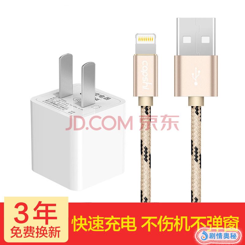 凯普世 苹果充电器套装 1A手机充电头+苹果数据线1.2米 金色 适用iPhoneXS/max/XR/8/7Plus/6s/6/5