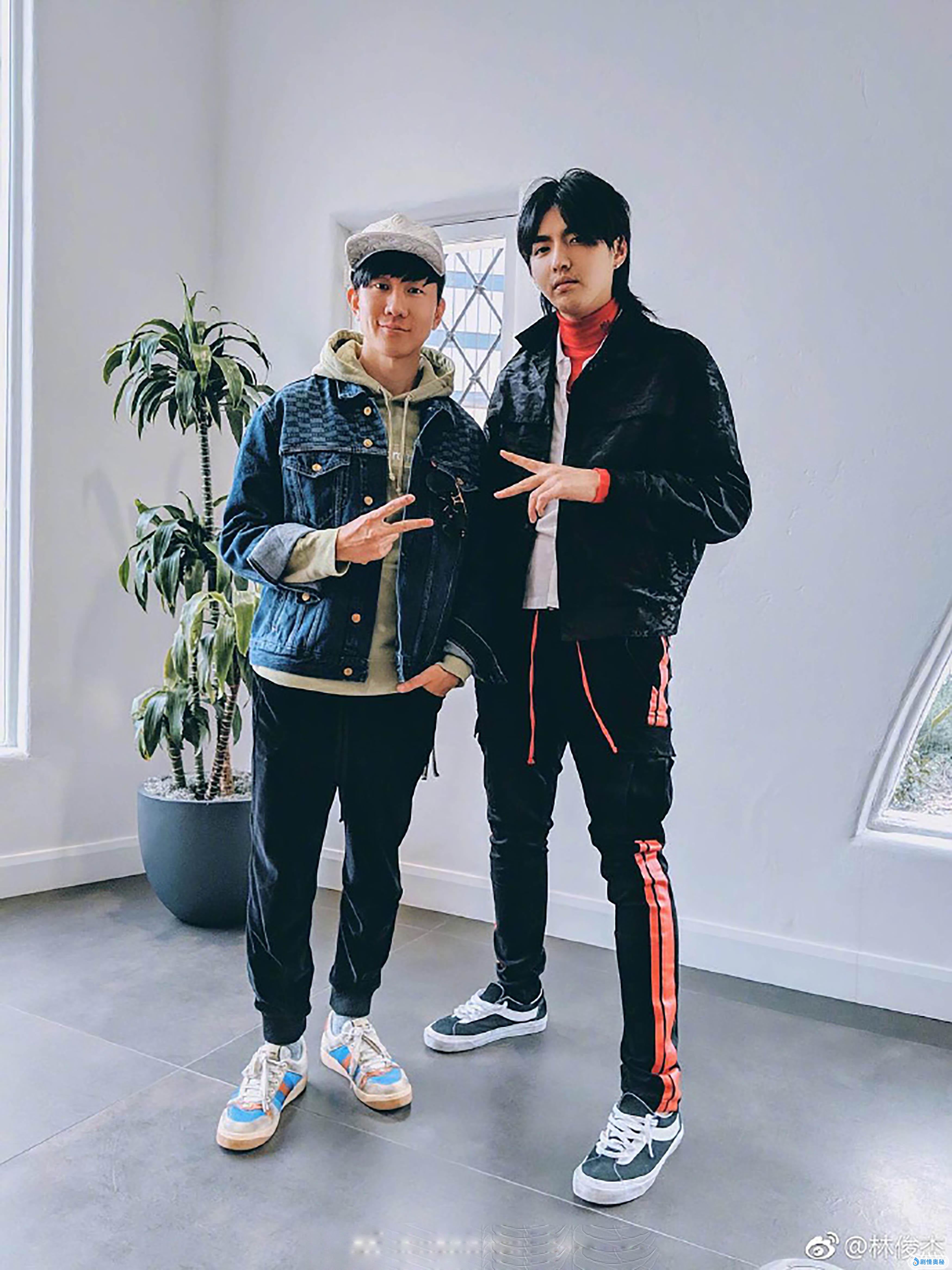 JJ一旁的吴亦凡看穿搭也是很好看,整体以黑色为主,辅以淡橘色,内搭一件白色衬衫,穿的一双鞋貌似还是vans的经典款,这样的搭配,虽说跟JJ一样都是一身运动装,但是也穿出了不一样的感觉,魅力十足啊。