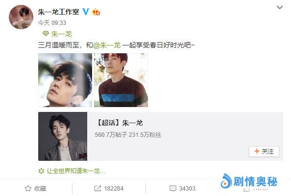 首先是朱一龙工作室,在“小笼包”的呼唤声中,消失已久的“朱小柿”姗姗来迟,他晒出了朱一龙的两张写真照,并且写道:三月温暖而至,与朱一龙一同享受春日美好时光吧!看到叼着花朵的朱一龙,“小笼包”的心再一次被温暖了,我们心心念念的美男子何时才能出山?