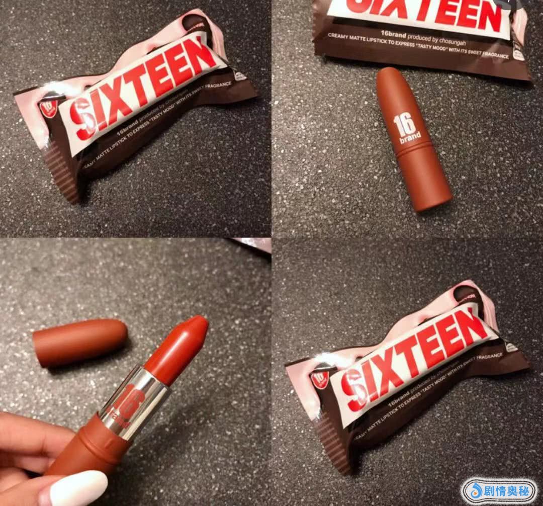 这款的外包装真的是太可爱了吧!巧克力的外包装,让女生看见了就超级想吃的那一种。这款有点像子弹头的形状,16布兰德Brand也属于一个比较小众的牌子。但是性价比真的超级高的那一种。女生们看见这样的包装真的会很心动了!他们家的口红都很顺滑,也不卡唇纹,价格70元左右就能入手。很值得学生党们购买哦~