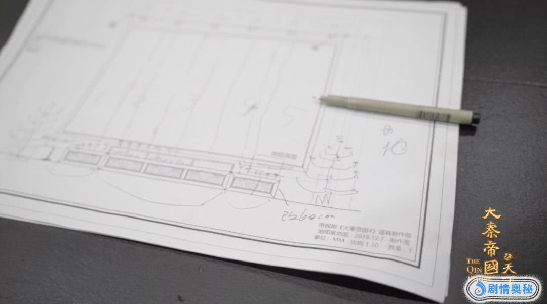 在这两个棚里,有好几个主要拍摄地,吕不韦的江山阁,秦王的军机室和作战室都在此搭建。军机室从天花板上的灯桥,到地面足足有十五米,围绕房间四周的书架上放满了书简,秦国之大气象,体现得淋漓尽致。