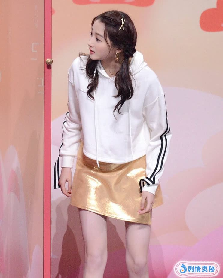关晓彤的腿穿上这样的袜子和鞋子,意外白得像加滤镜,还一点毛孔都看不出来,她的腿真绝了,而她搭配了一条金色短裙,短款的设计,更性感,她的裙子非常blingbling!