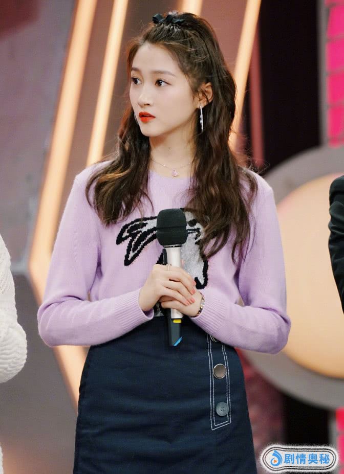 关晓彤非常适合穿短裙,毕竟她的腿这么好看,她这次穿了一件紫色毛衣,这是很简单的毛衣,搭配了一条黑色短裙,她的裙子也是很好看的,看上去她的身材真瘦啊,这裙子非常美。