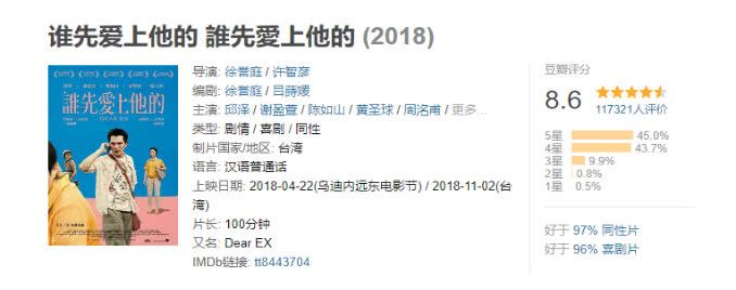 一部不到800万投资的低成本电影,在今年的金马奖上一路横冲直撞,成为了本届电影节的大黑马——《谁先爱上他的》。这是一部讲诉小人物的爱与恨,探讨同性和异性的剧情片。豆瓣评分8.6,超过10万网友评分,这无疑是一个非常亮眼的分数。许多网友都表示看这部电影时笑泪并齐,剧中邱泽饰演的男主阿杰也成为了大家心中的2019第一“意难平”。